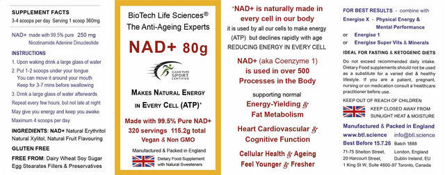 NAD+ 80 grams Anti-Ageing Ultra Pure >99.5% + Natural Citrus