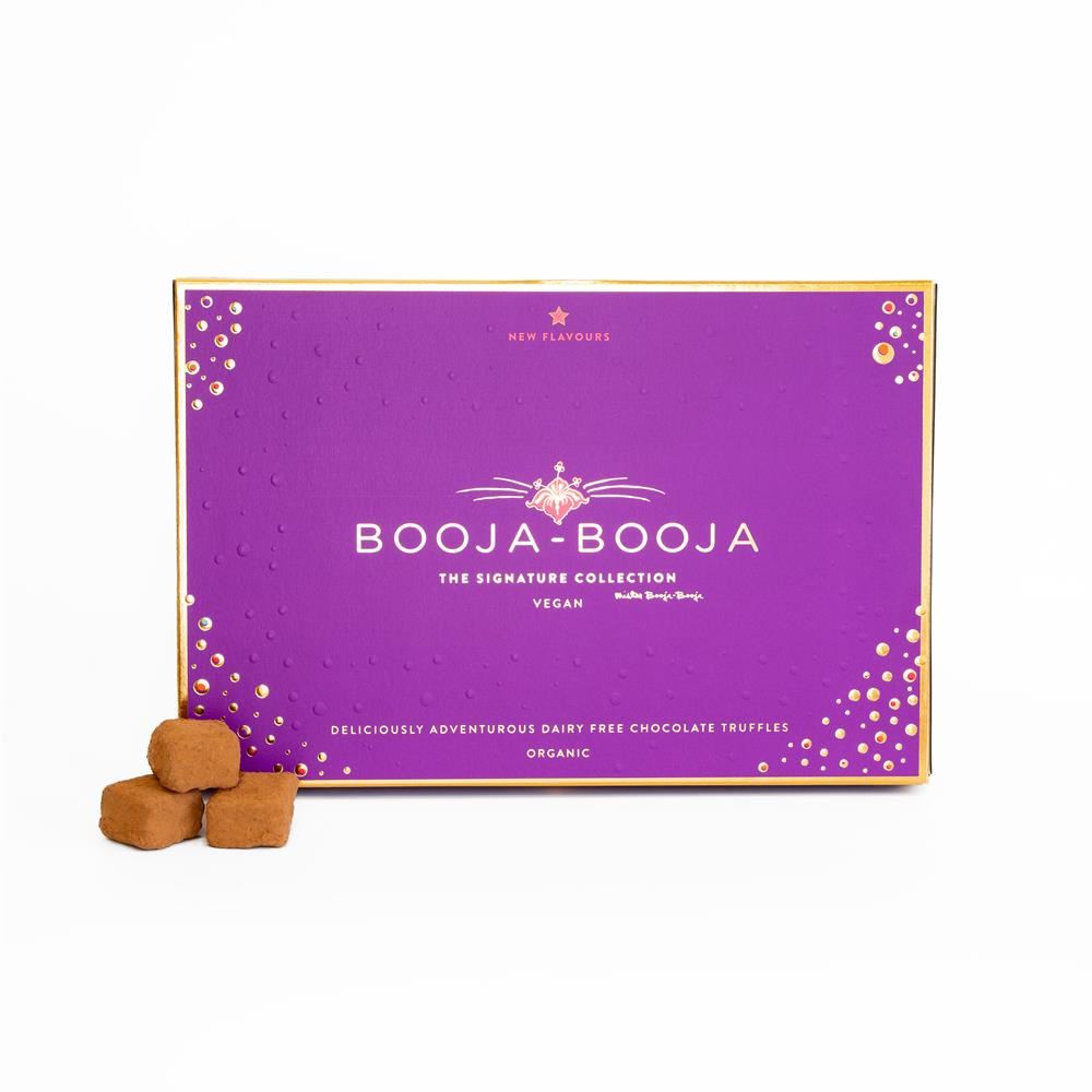 Discover the exquisite indulgence of Booja-Booja The Signature Collection 184g, a curated assortment of sixteen uniquely crafted chocolate truffles that promise an adventurous journey for your palate. Each truffle is expertly developed in Mister Booja-Booja's special parlour, where passion and craftsmanship meet to create sublime, organic confections.