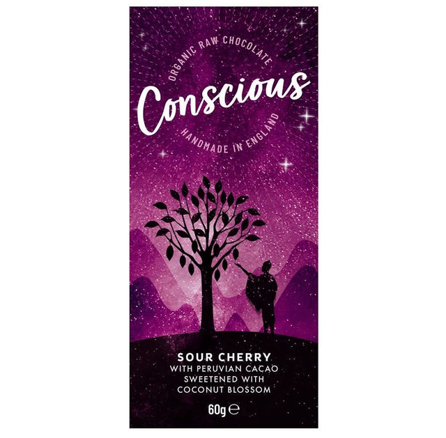 Conscious Chocolate Sour Cherry Raw Vegan Organic Chocolate Bar 60g - 10 Pack