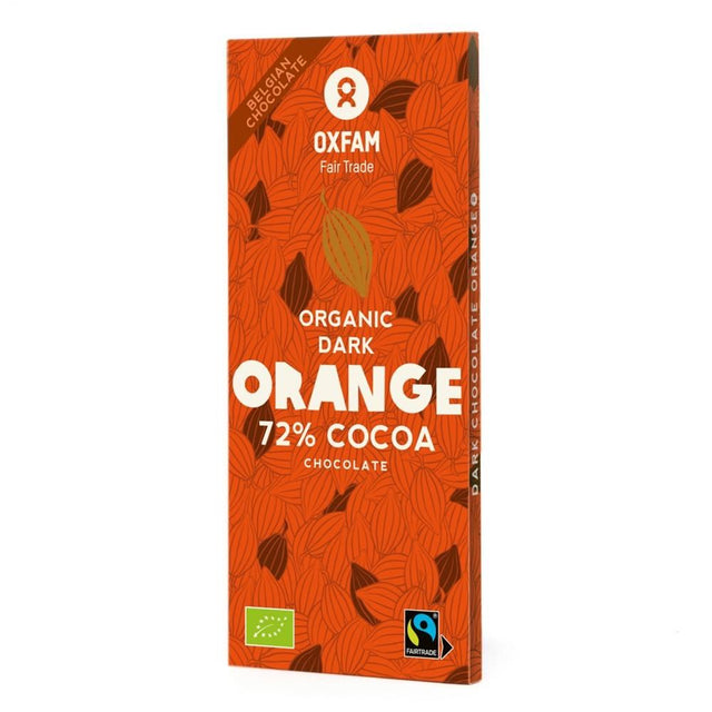 Enjoy Oxfam Fair Trade ORGANIC Dark Chocolate Orange by unwrapping and consuming directly as a rich, flavorful treat. Ideal for snacking, baking, or pairing with beverages.