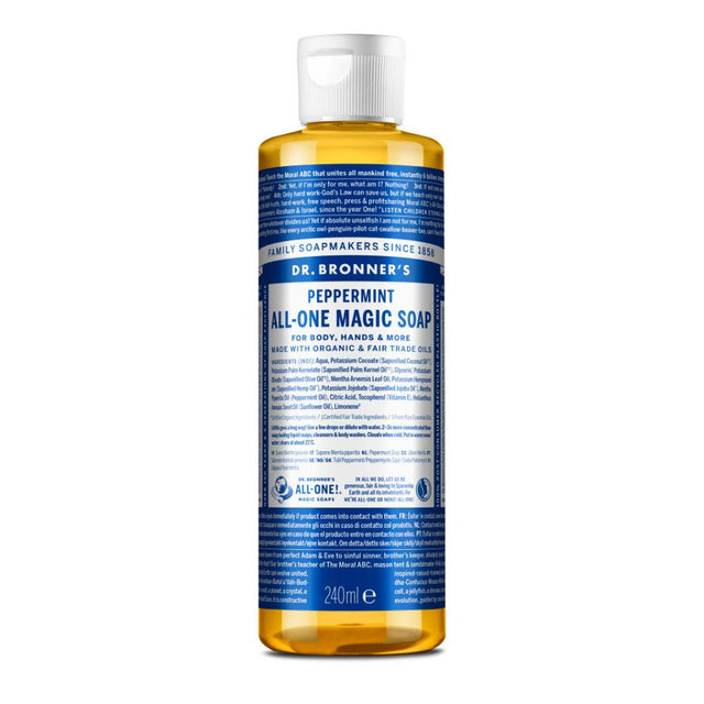 Experience the all-in-one magic of Dr Bronner's Peppermint Pure-Castile Liquid Soap and enjoy a clean that's as pure as nature intended.