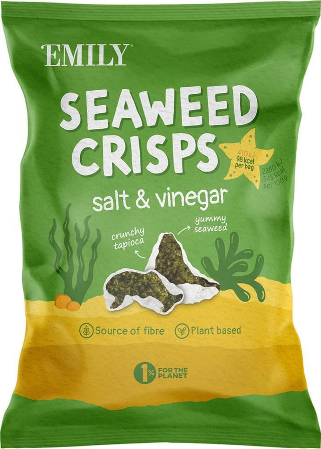 Enjoy the wholesome taste and satisfying crunch of Emily Seaweed Crisps Salt & Vinegaran excellent choice for health-conscious consumers seeking a delicious and sustainable snack option.