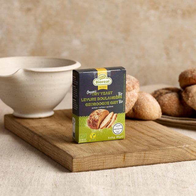 Bioreal Organic Active Dry Yeast 5x9g is the perfect natural leavening agent for baking delicious bread, pizza, and pastries with exceptional organic quality. Crafted to meet the needs of health-conscious bakers, this active dry yeast is both gluten-free and vegan, ensuring inclusivity for various dietary preferences without compromising performance.