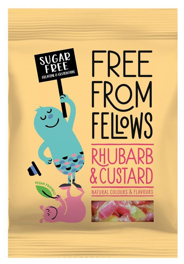 Crafted with care, these sweets are part of the Free From Fellows range, celebrated for delivering the UK's favourite confectionery products without compromising on dietary needs. These Rhubarb & Custard sweets are made without sugar, making them an ideal choice for those seeking reduced sugar options without sacrificing great taste.