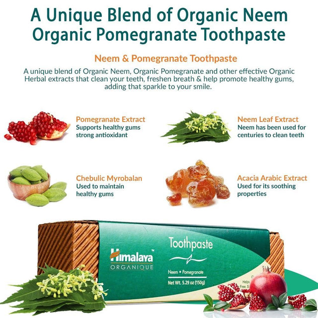 Himalaya Herbal Healthcare Neem & Pomegranate Toothpaste 150g offers a natural and effective solution for daily oral care. This unique formulation combines the power of organic neem, organic pomegranate, and other carefully selected herbal extracts to provide comprehensive dental hygiene.