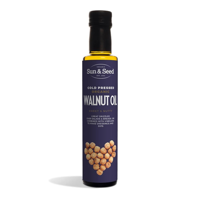 Use Sun and Seed Organic Walnut Oil cold-pressed 250ml as a finishing oil for salads, drizzling over cooked vegetables, or adding a rich, nutty flavor to dishes. Ideal for cold applications; avoid heating to preserve its nutritional qualities.