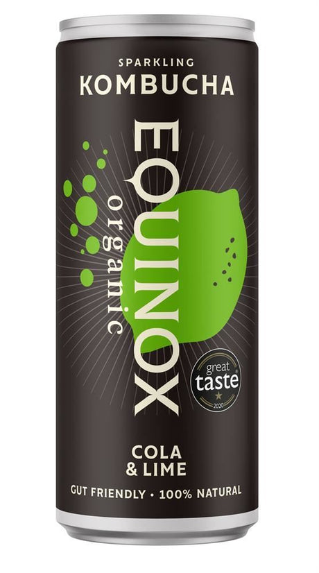 Equinox Kombucha Organic Kombucha Soft Drink Cola & Lime 250ml Can - 12 Pack