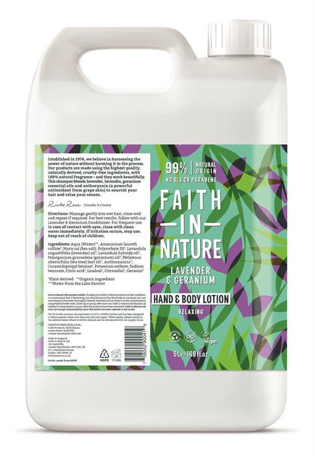 Faith in Nature Lavender & Geranium Hand & Body Lotion 5 Litre