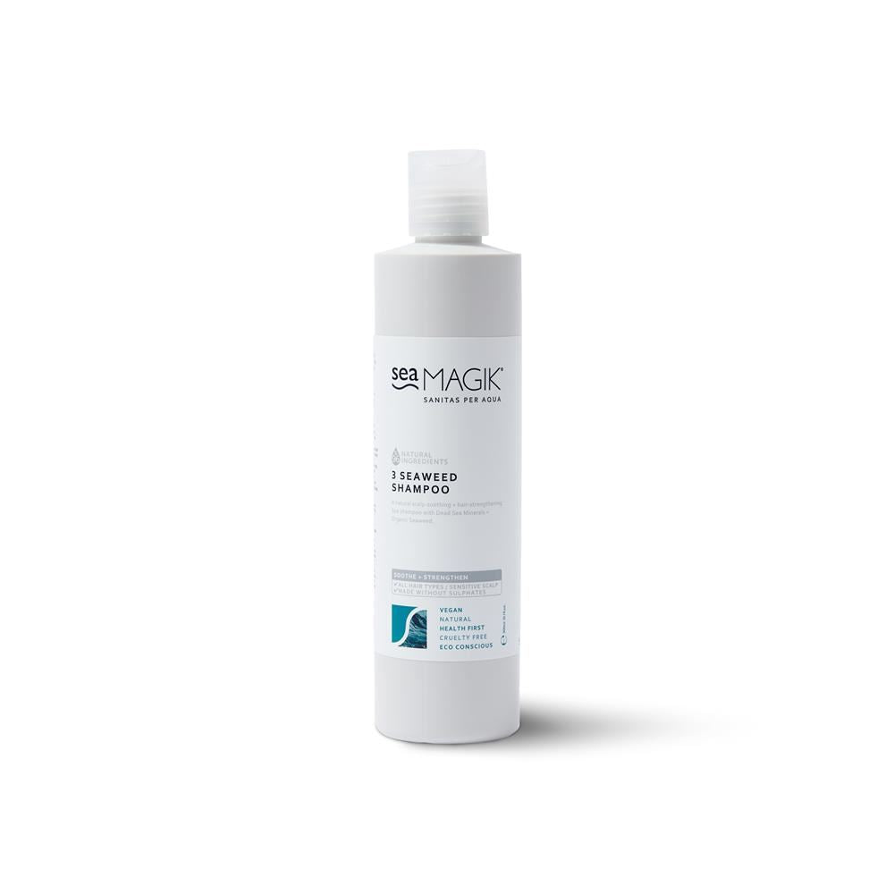 Experience the rejuvenating power of the sea with the Sea Magik 3 Seaweed Shampoo. Expertly crafted to soothe your scalp and strengthen your hair, this sulphate-free formula combines the nourishing benefits of three organic seaweeds, hydrating Dead Sea minerals, and soothing aloe vera.