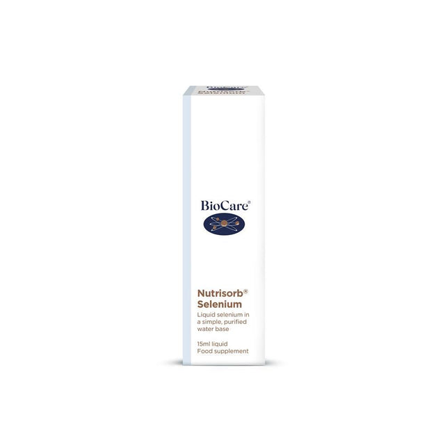 Biocare Nutrisorb Selenium 15ml is a high-potency liquid supplement designed to provide essential antioxidant support. Formulated in a simple, purified water base, this product delivers selenium in a clinically effective form to help protect cells from oxidative stress while supporting immune function, fertility, and thyroid health.