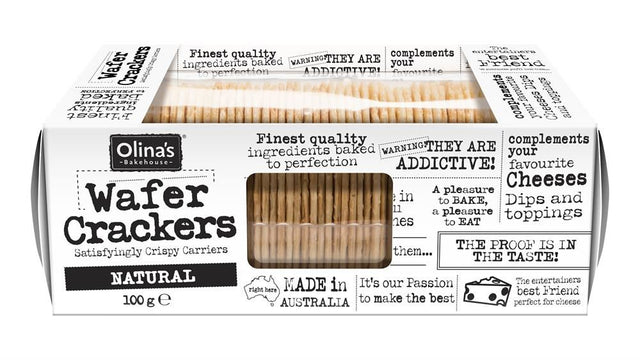 Olinas Bakehouse Natural Wafer Crackers 100g is backordered and will ship as soon as it is back in stock.