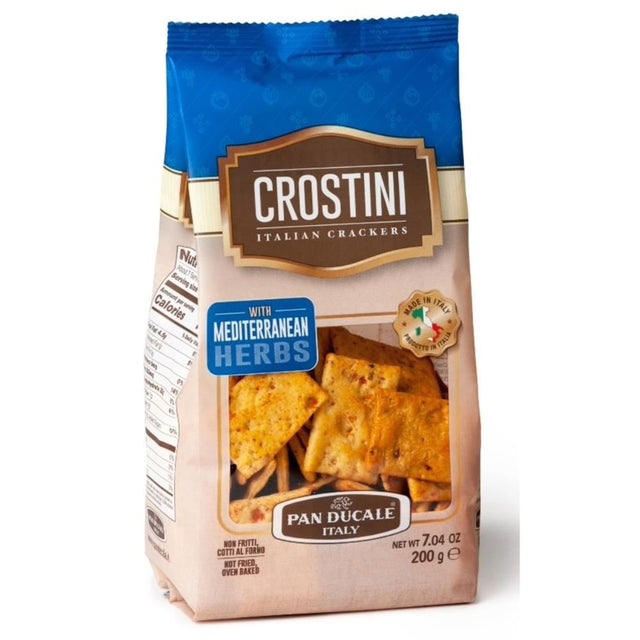 Elevate your culinary experience with Pan Ducale Crostini infused with authentic Mediterranean herbs. These perfectly toasted croutons offer a delightful crunch and an aromatic blend of herbs that capture the essence of the Mediterranean coast.