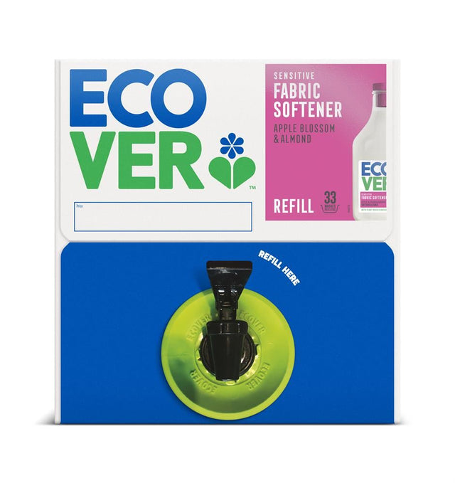 Add 40ml of Ecover Fabric Softener Refill Apple Blossom & Almond to your washing machineâs fabric softener compartment per wash. Suitable for up to 500 washes.