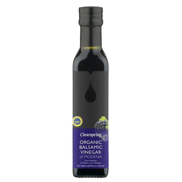 Experience the heritage and tradition of Modena in every drop of Clearspring Organic Balsamic Vinegar, a natural choice for discerning cooks seeking genuine quality and taste.